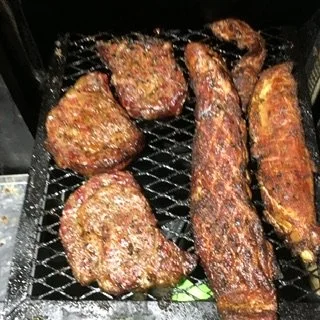 We slow smoke our meats to perfection on a true wood smoker with mesquite